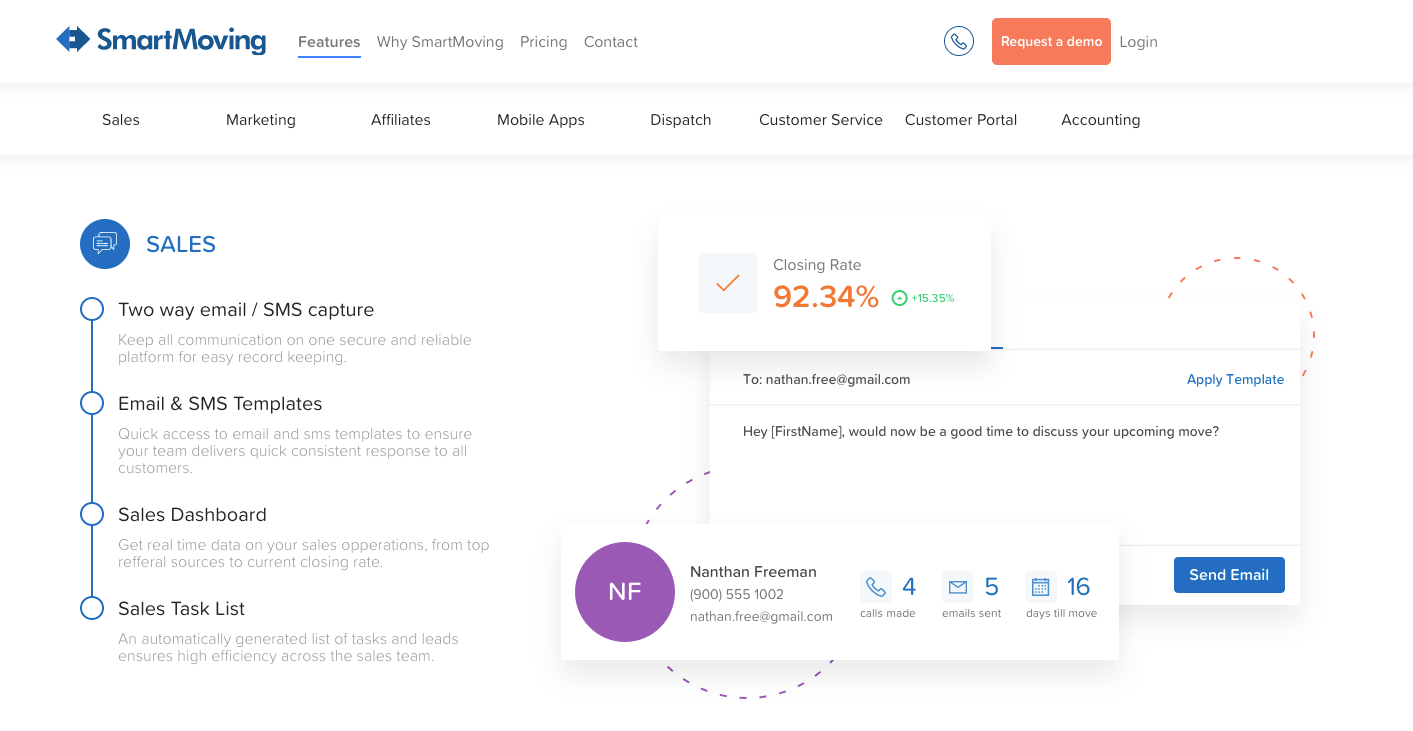 Our personal favorite at the top of the list is Smart Moving. This is a great way for you to ensure that you’re getting the most profit out of your moving company. While they’re mostly for lead management and marketing, you can also use payments, CRM features, dispatching, managing accounts, along with damage and claim tracking. They offer a demo as well to try them out.